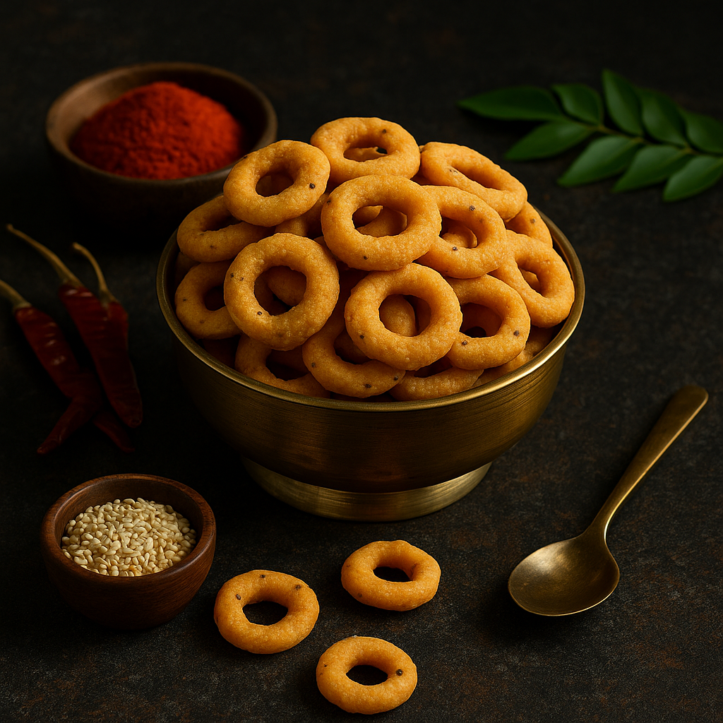 Traditional in preparation and rich in flavour, Chegodilu offers a nostalgic taste of Andhra households. Whether enjoyed with tea, served during festivals, or eaten as a quick crunchy snack, it’s a crowd-favourite loved by all ages.
