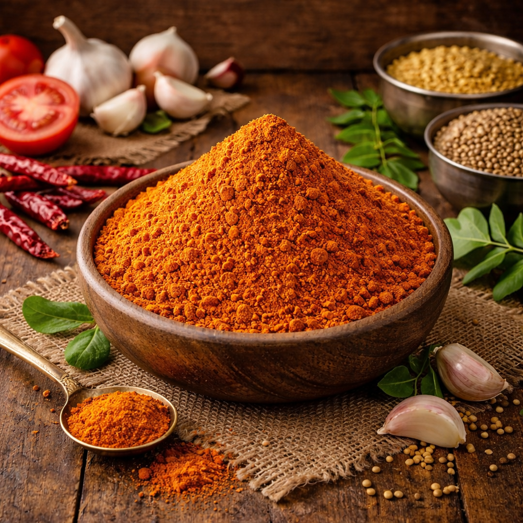 Add authentic South Indian flavor to your cooking with Kura Karam, a classic homemade spice powder prepared using carefully roasted lentils, premium red chilies, and traditional spices. Ground to perfection, this aromatic masala enhances the taste of vegetable curries, dry sabzis, poriyals, and stir-fried dishes with a rich, bold, and balanced spice profile.