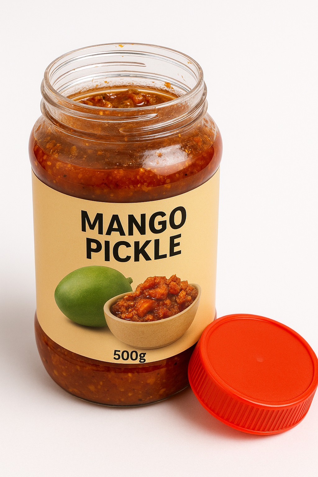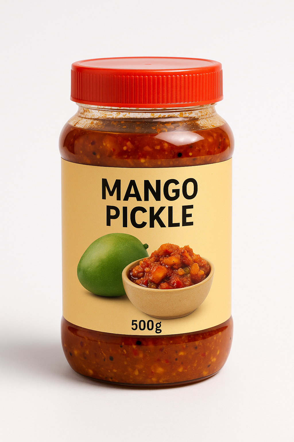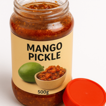 Bring home the authentic taste of India with our Mango Pickle — a flavorful blend of sun-dried raw mango chunks, aromatic spices, and cold-pressed oil. This pickle is prepared using traditional recipes to preserve its rich, homemade flavor. Perfectly balanced in spice and tanginess, it pairs wonderfully with rice, roti, or parathas. Free from artificial colors and preservatives, this pickle offers pure, authentic taste and a burst of nostalgia in every bite.
