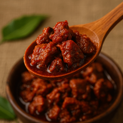 Authentic Indian-style Mutton Pickle made with tender mutton chunks, slow-cooked in aromatic spices and pure edible oil — a rich, spicy delicacy for meat lovers.