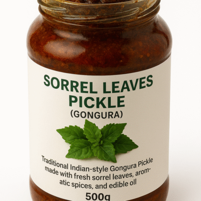 Indulge in the vibrant flavors of Andhra Pradesh with our traditional Gongura (Sorrel Leaves) Pickle. Made using freshly harvested sorrel leaves blended with roasted spices and cold-pressed oil, this pickle delivers a perfect balance of tanginess and heat. Known for its unique flavor and digestive benefits, Gongura pickle pairs beautifully with hot rice, dosas, or parathas. Prepared using age-old home recipes, it’s free from artificial colors and preservatives — just pure, authentic taste straight from Indian kitchens.